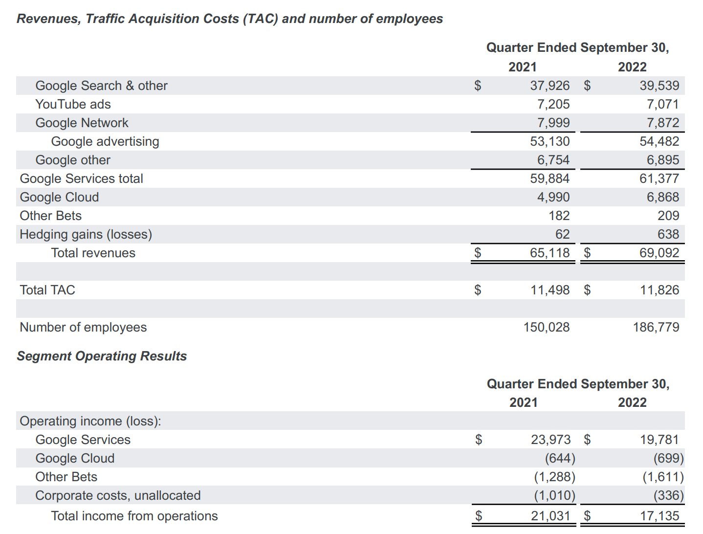 Sundar Pichai: 專注在觀看人數、創作者及廣告主長期的增長。近期改變主要為強化Shorts的貨幣化率,並將在明年推出Shorts分潤機制。 Philipp Schindler: 平均每日Youtube觀看時數達700 Mn以上,Youtube Shorts月活躍用戶達15億人,每天300億次觀看We remain focused on long-term growth for our community of viewers, creators and advertisers. To that end, we announced some exciting changes at our Made on YouTube event last month. First, improving the monetization of Shorts. This is a big deal for creators and for our business. We'll introduce revenue sharing on Shorts early next year. This update makes YouTube the only platform where creators can monetize their content across short, long and live formats at scale. -Sundar Pichai